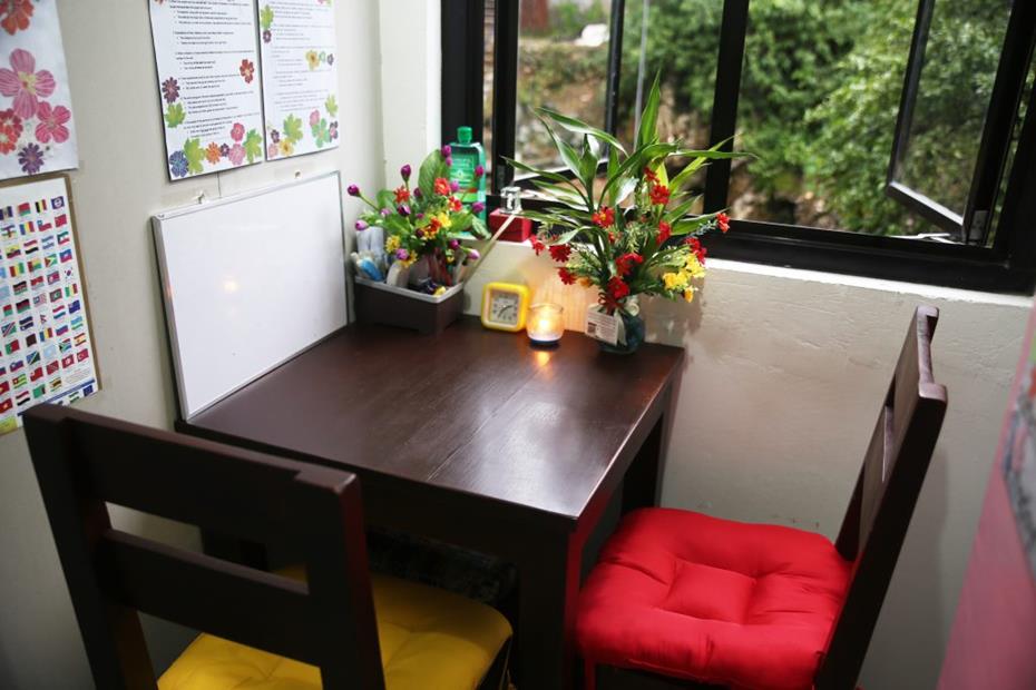 | 学校内設備 | 学生ラウンジ、売店、ウォーターサーバー、卓球,ビリヤード,バレー,バスケット,マッサージルーム、中庭 等 ※中庭 屋外授業を受けたい学生は、ヘルプデスクで申請で中庭マッシュルームチェアを使ってマンツーマン授業で可能。 |