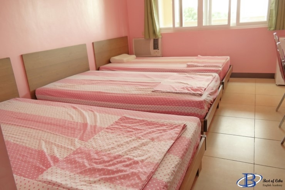 | 学校内設備 | クラスルーム、食堂、自習室、スポーツジム、カフェテリ ア、クリニック、ウォーターサーバー(給湯機能有)、指定 場所Wi-Fi、2種類のリビングルーム プール:なし ジ ム:なし(徒歩圏内のモール内に提携ジムあり)男性630ペソ/月、女性540ペソ/月 |