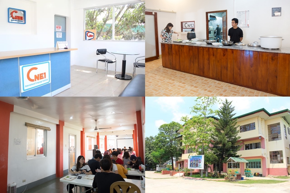 CNE1はフィリピン政府高等教育委員会から学校法人として認可を得ている学校です。卒業生3000名を輩出しております。入学者の40%以上が卒業生からの口コミでの紹介で、リピーターも非常に高いのが特徴です。豊富なコース、フレキシブルなカリキュラムが特徴です。「WEBデザイン入門コース」「ワーホリ・バリスタ留学コース」「こども英語先生養成コース」などユニークなコースも用意されています。クラス構成はマンツーマンがメインです。学校として英語を使用し働ける人材育成開発を目的としたコースや海外就職を支援するコースもあります。学校周辺は犯罪などが起きない治安のよいエリアですが、校門横に地元警察が派出所を設けており万全の安全が担保されています。各寮の前にもCNE1のガードが24時間常駐しています。寮は一人部屋、二人部屋、四人部屋で寮タイプが3つあり、各トイレシャワーが外部共用、トレイシャワーが部屋内で共用セパレート、すべてが個人用の1人部屋に分かれています。ネット環境は光ファイバー導入済み2社契約で快適にインターネットが使えます。10Mから200Mに増設しており、かなり快適な環境となっています。また停電や災害時でも自家発電で電気も止まることはなく安心です。食事は日本人の好みに合わせ野菜中心に、味噌汁や日本人に合った米など、美味しい食事が味わえます。