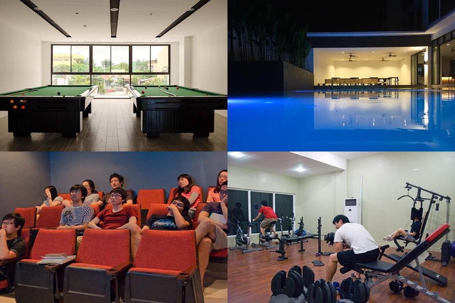 | 学校内設備 | 自習室、売店、カフェ、食堂、シアタールーム、庭、キッズルーム、ビリヤード台、卓球台 プール:あり ジ ム:なし |