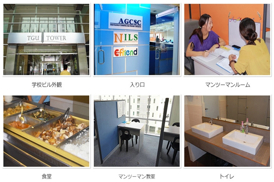 NILSはセブの中心都市ITパーク内にある日本資本の学校です。ITパークは近代的な商業ビルが立ち並び、飲食店やショップが多く、治安も良いので日本人が生活しやすいエリアです。カリキュラムは一般的なESLと各種試験対策コースと点数保証コースが用意されています。カランメソッドを取り入れており、初心者の英語学習に効果的です。授業構成はオールマンツーマン授業となっており、マンツーマンを1日最大10コマ受けることが出来ます。土曜日と日曜日に無料のオプションクラスを1日6コマ受講することが出来ます。セブの中でも格安校ですので寮の施設はそこそこですが、留学費用を抑えられ学生の方に人気です。門限がなく、寮での飲酒も可能ですので社会人の方にもおススメです。