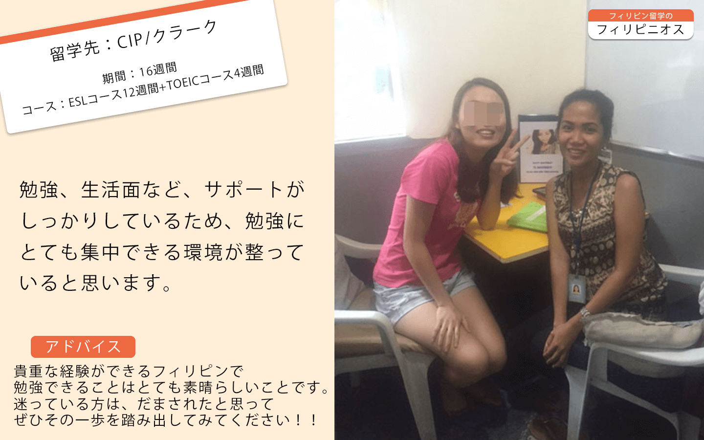 / フィリピン留学・セブ留学体験談 /【CIP】S・Iさんの体験談 /ESLコース+TOEICコース/16週間