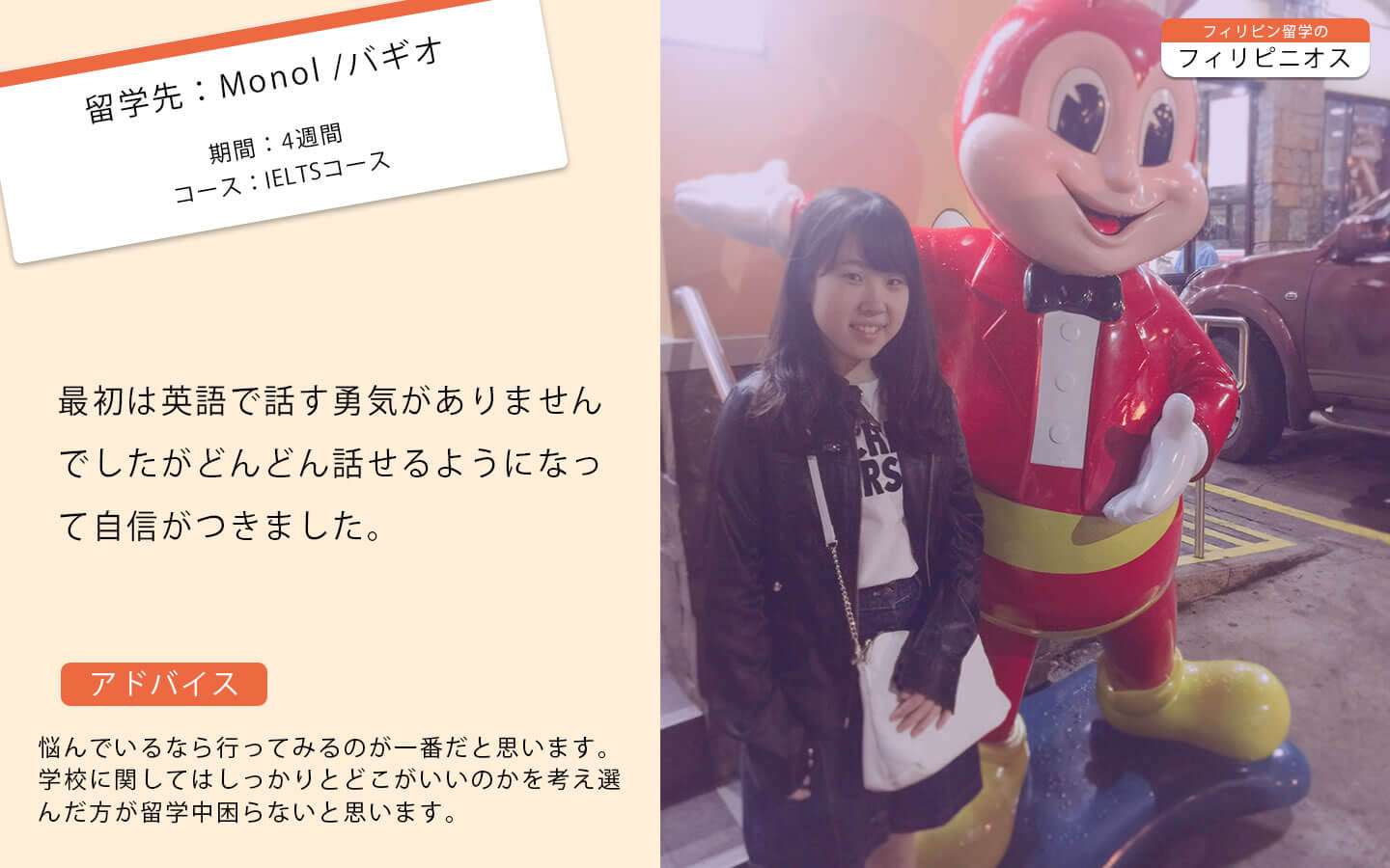 / フィリピン留学・セブ留学体験談 /【MONOL】まーさんの体験談/IELTSコース/4週間