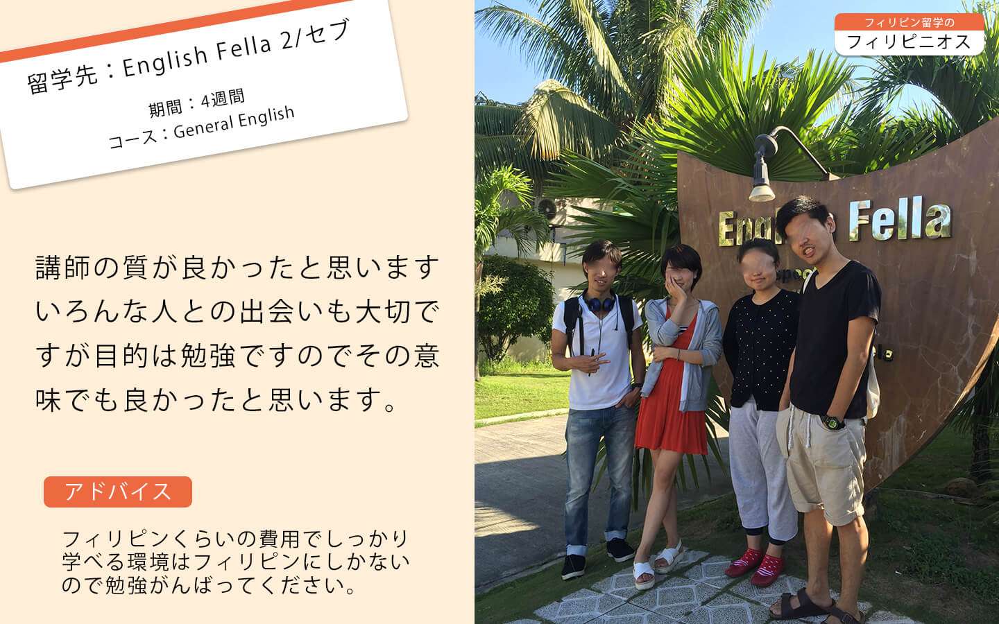 / フィリピン留学・セブ留学体験談 /【English Fella2】いもこさんの体験談 /General Englishコース/4週間