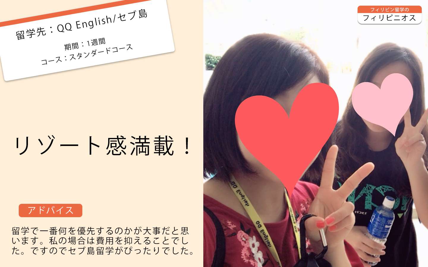 / フィリピン留学・セブ留学体験談 /【QQ English シーフロント校】RISAさんの体験談 /スタンダードコース/1週間