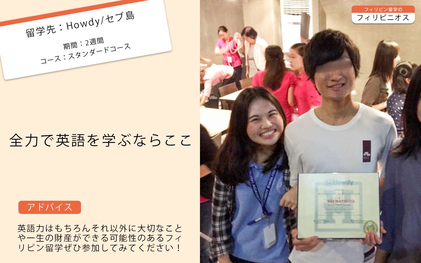 / フィリピン留学・セブ留学体験談 /【Howdy】Reiさんの体験談 /スタンダードコース/2週間