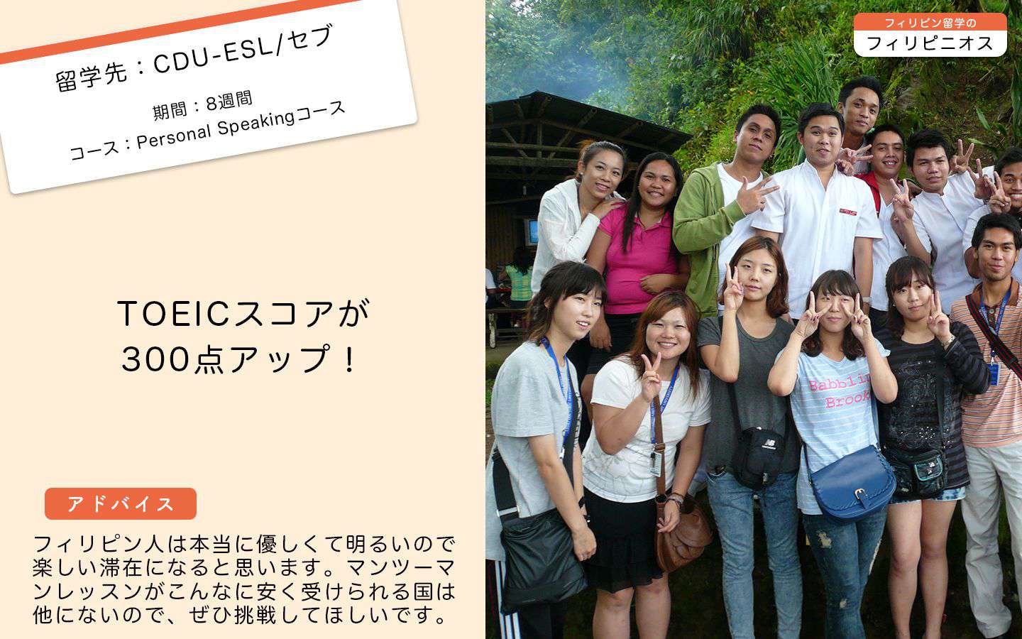 / フィリピン留学・セブ留学体験談 /【CDU-ESL】えみこさんの体験談 /Personal Speakingコース/8週間