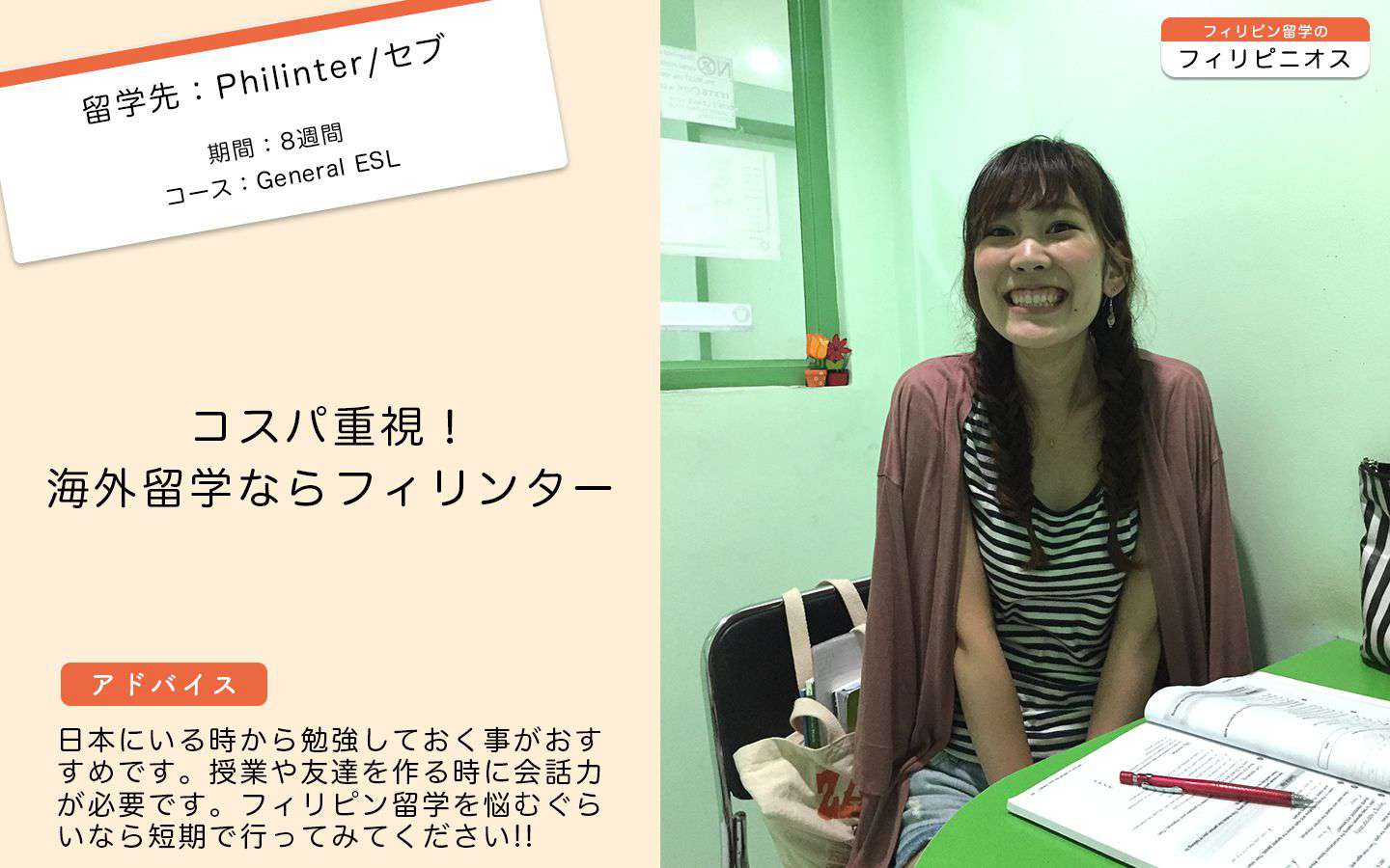 / フィリピン留学・セブ留学体験談 /【Philinter】Yukinoさんの体験談 /Generalコース/8週間