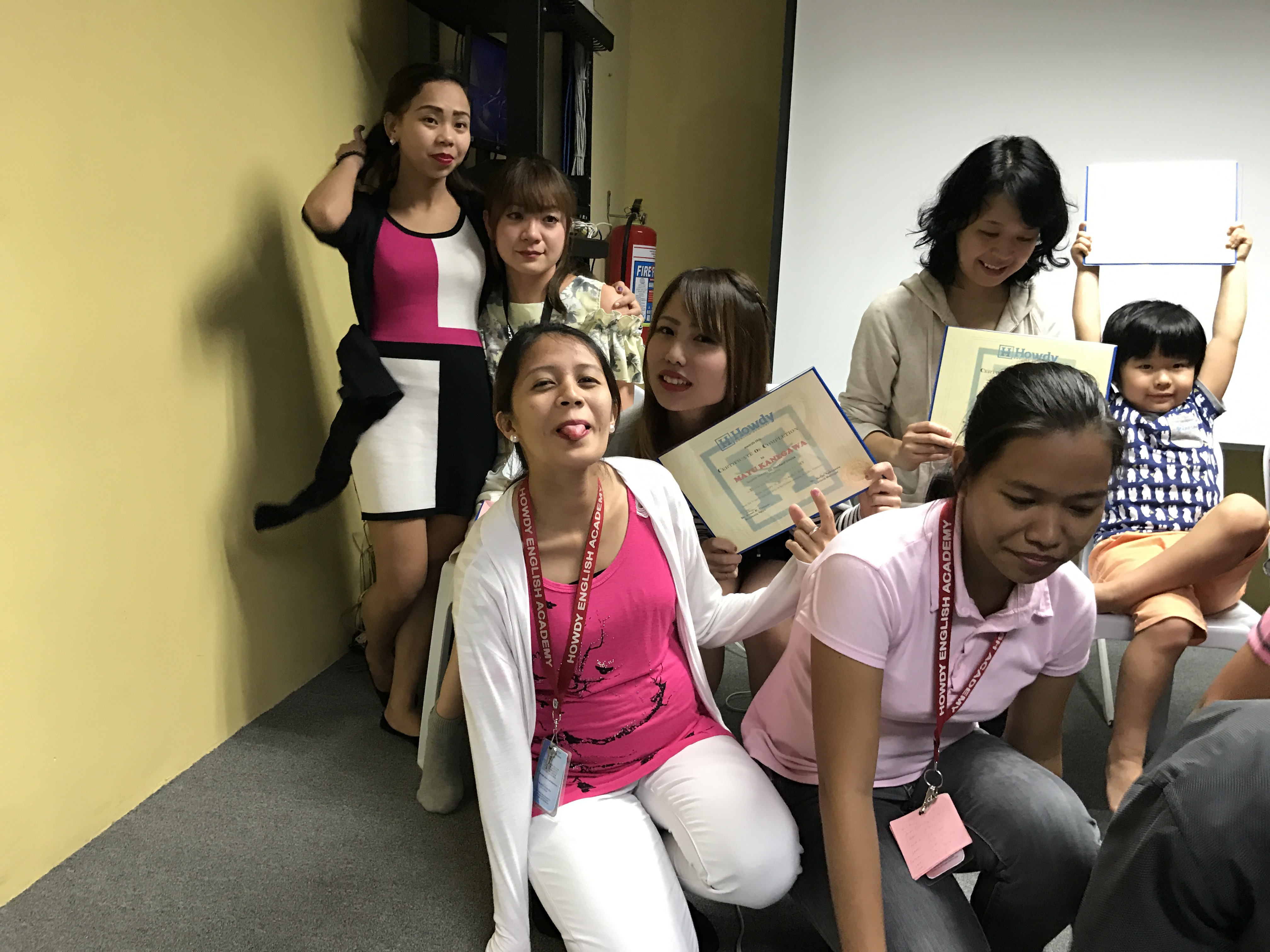 ほとんどゲームでした。チーム戦や、個人戦でしりとりの英語バージョンや、フィリピンの手遊びゲーム。あとは、提出されたお題の発表会もありました。