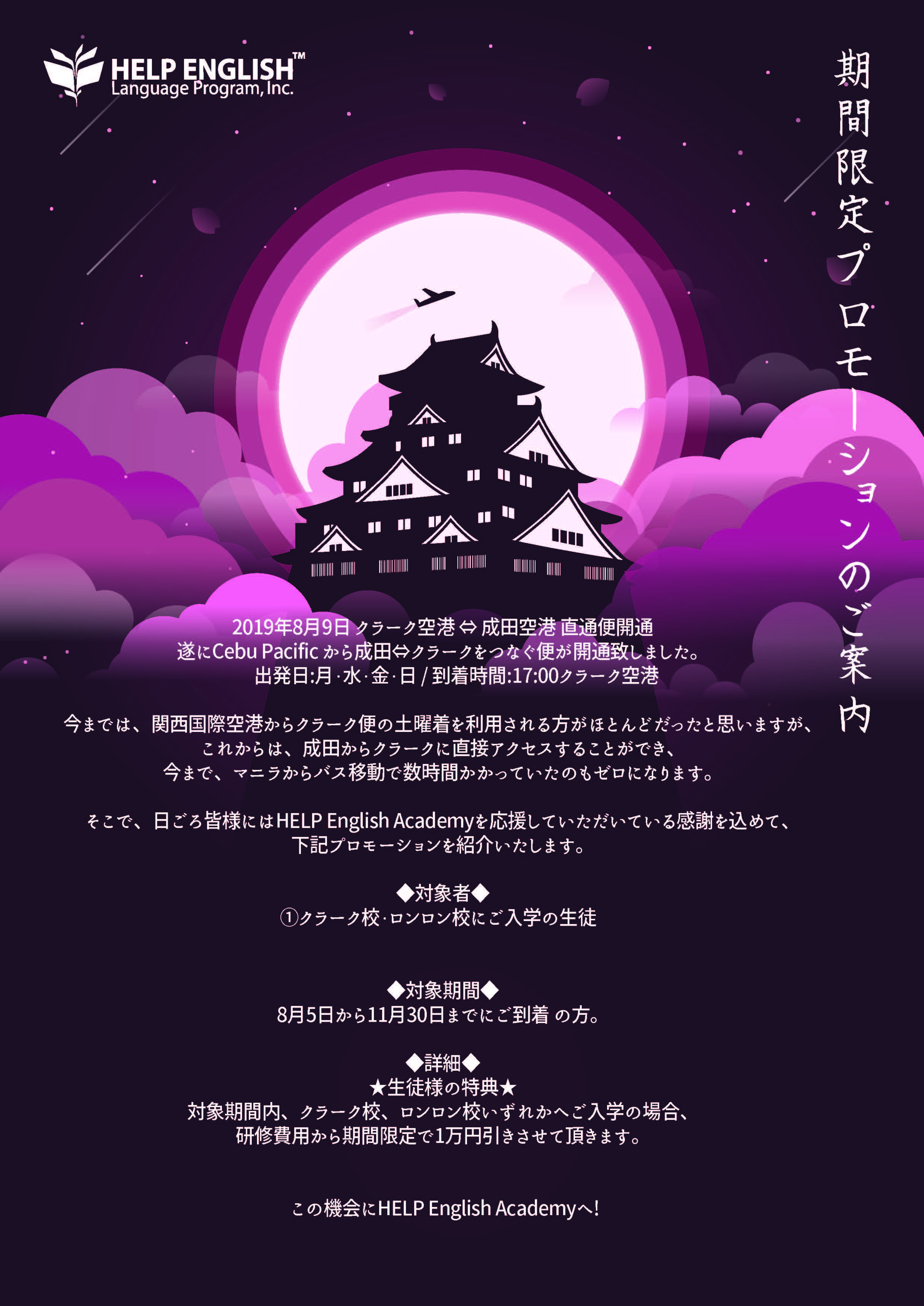 内容 ・クラーク校,ロンロン校ご入学の場合研修費用から期間限定10,000円引き