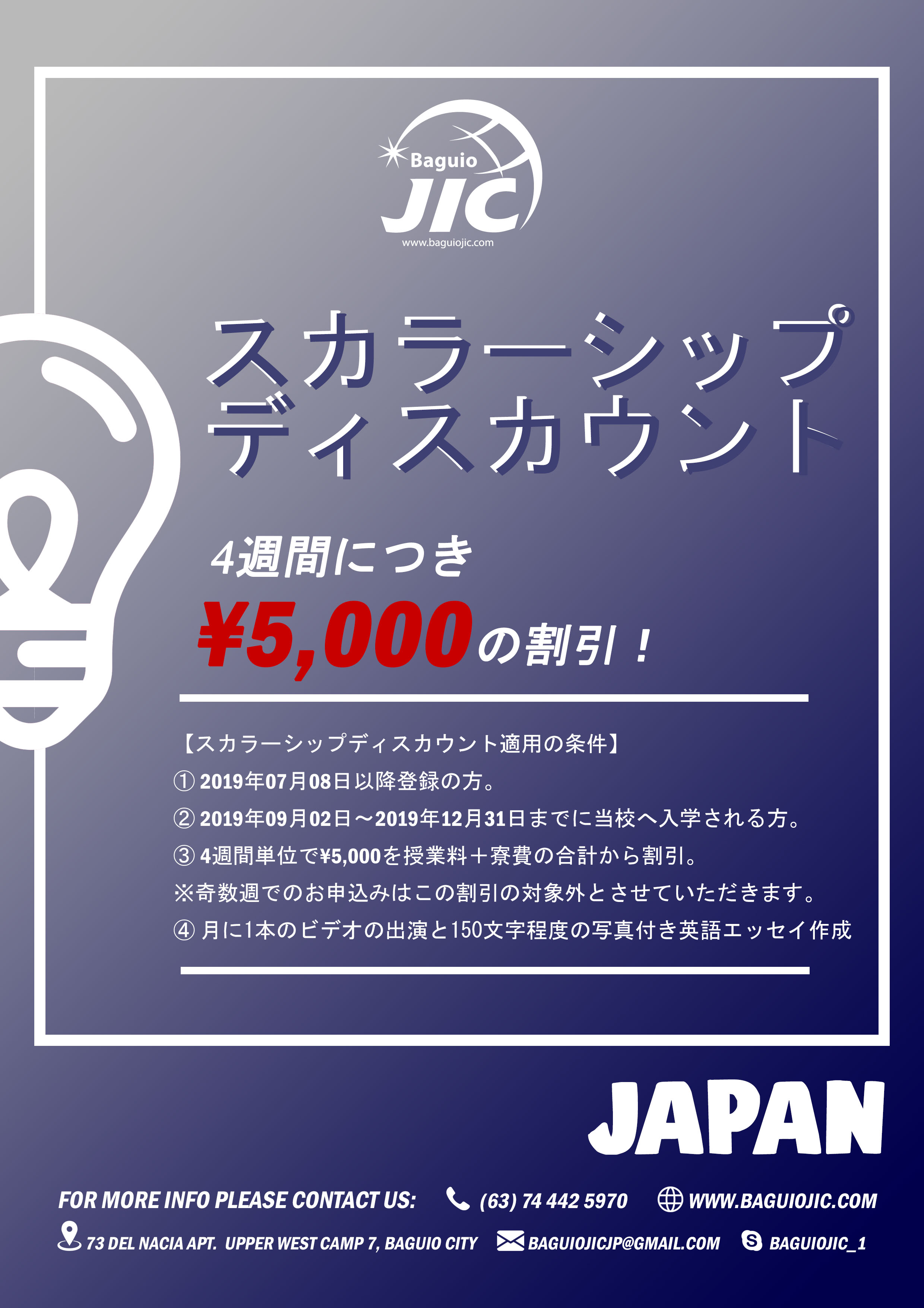 4週間ごとに授業料+寮費から5,000円を値下げ