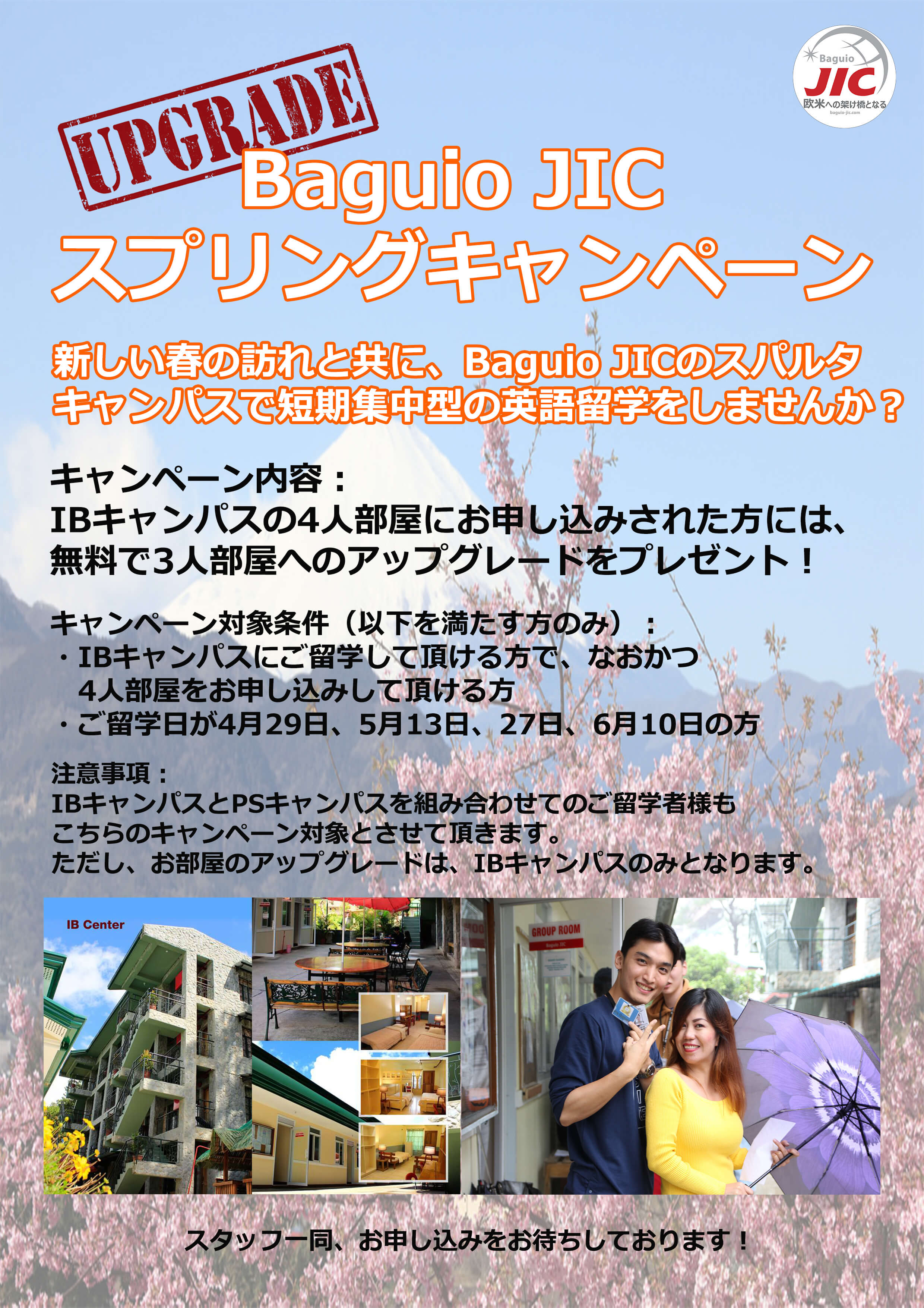 IBキャンパスとPSキャンパスを組み合わせてご留学の方も当キャンペーン対象となります。ただし、お部屋のアップグレードはIBキャンパスのみとなります。