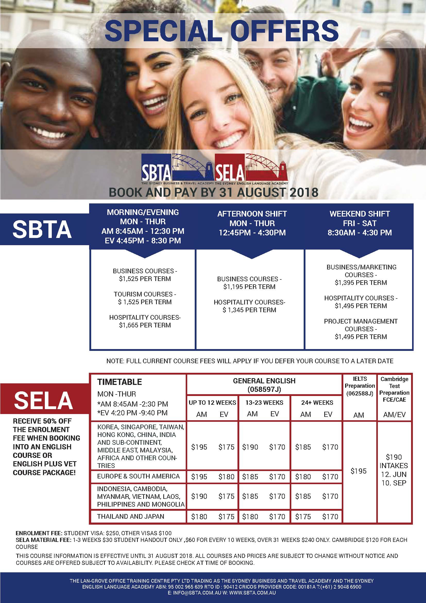 【SBTA/SELA】SPECIAL OFFERS BOOK AND PAY BY 31 AUGUST 2018