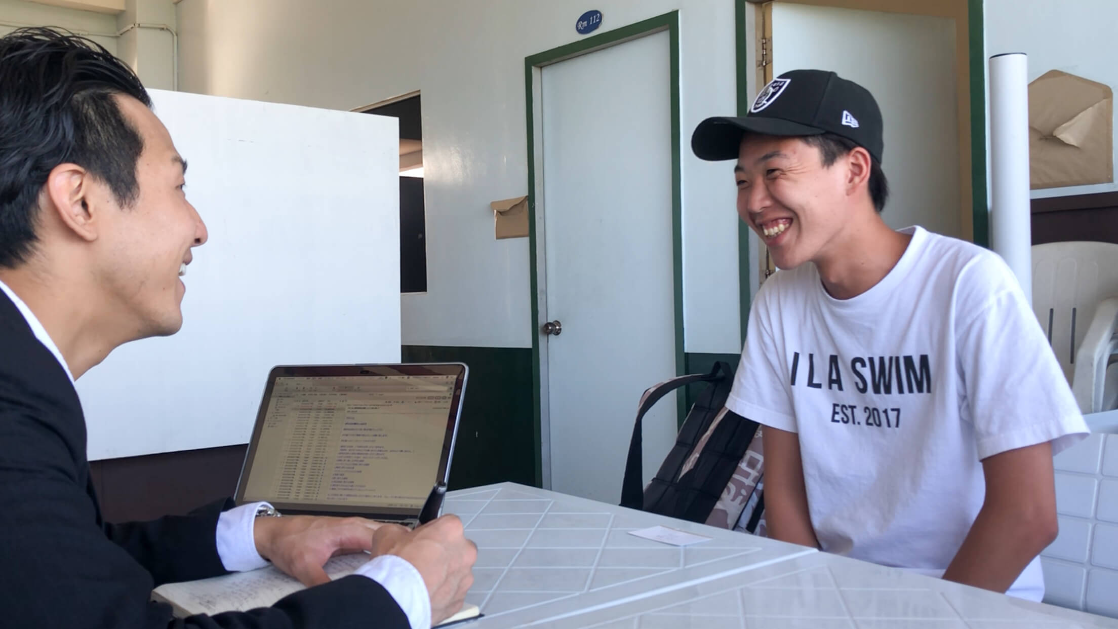 ※校内でのテラスでのインタビュー風景