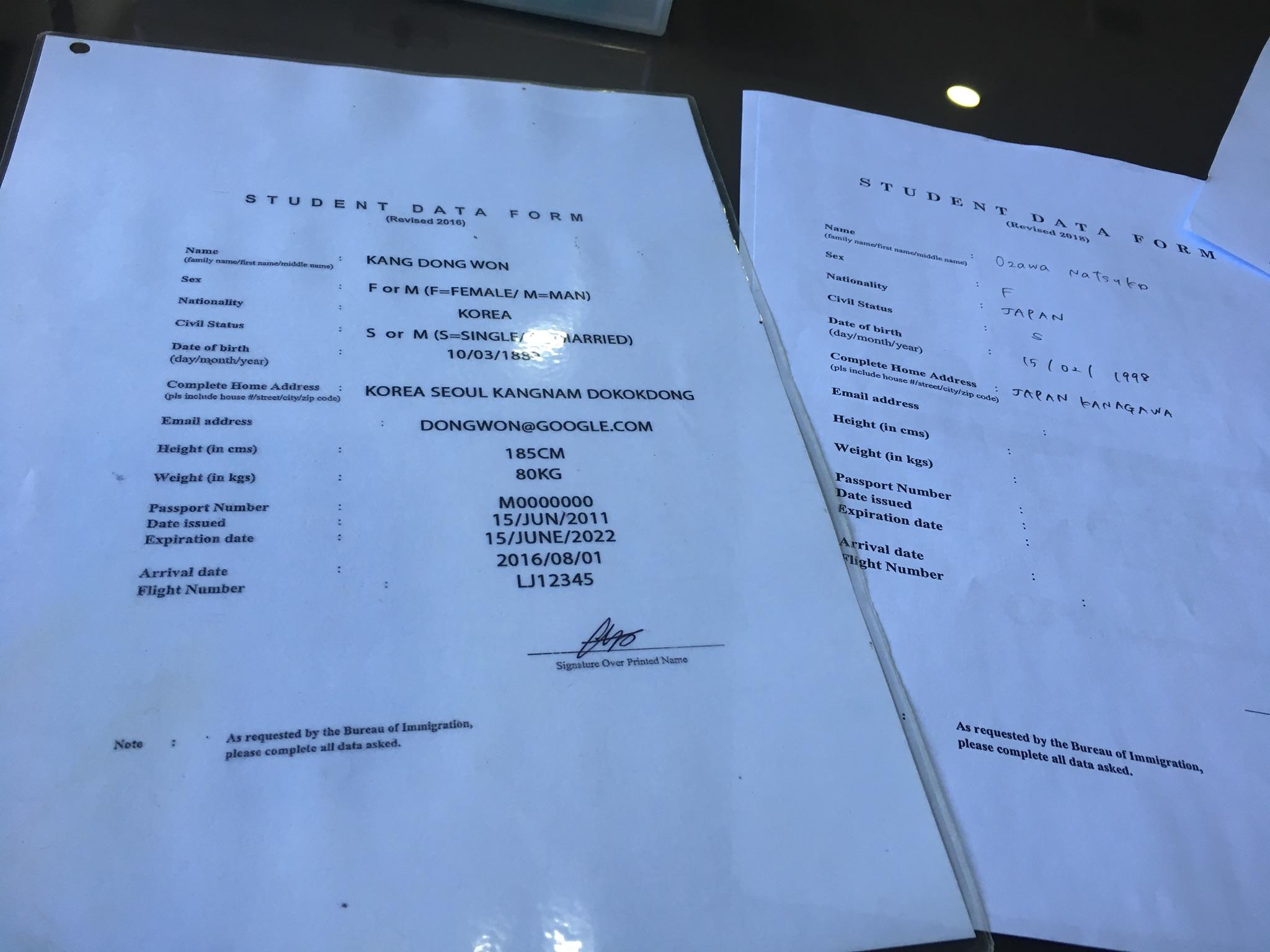 書類の記入、パスポート、VISAとIDカード用の写真が回収されます。