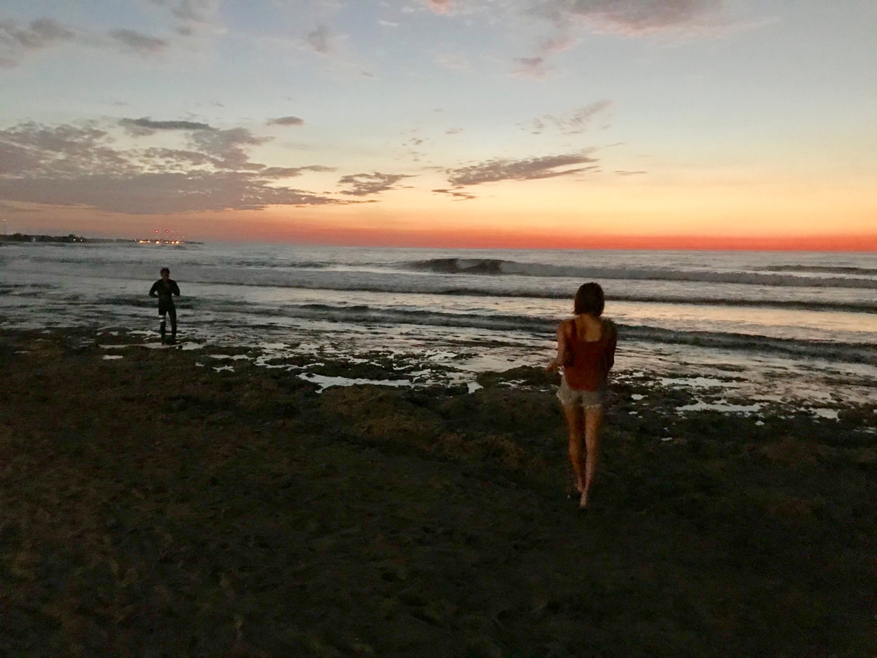 サーフィンが4時ぐらいに終わりその後軽く町を散策してから5時30ぐらいにサンセットを見にビーチに行きました!この日は快晴で水平線に沈む夕日を見ることができました!