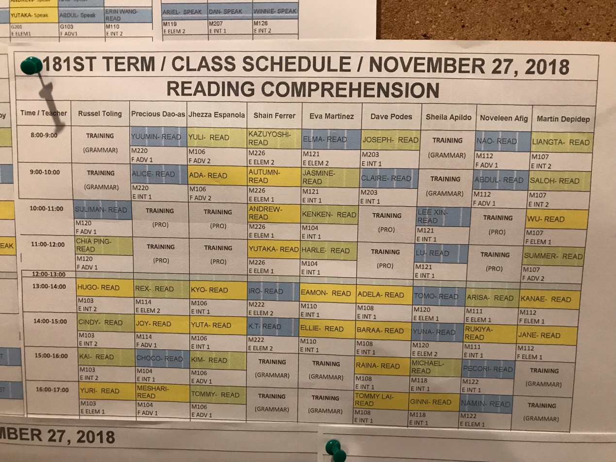 私の友達にIELTSコースとTOEICコースの友達がいますが、その子たちは毎週金曜日にテストを受けています!やはりテスト対策コースなのでテストの数が多いのでしょう。
