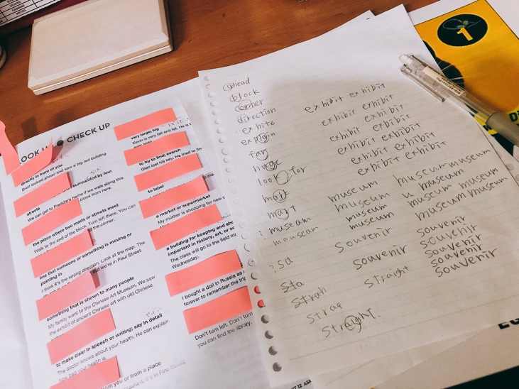 テストの前の日は何度も紙に書いたり英語の意味を理解したり