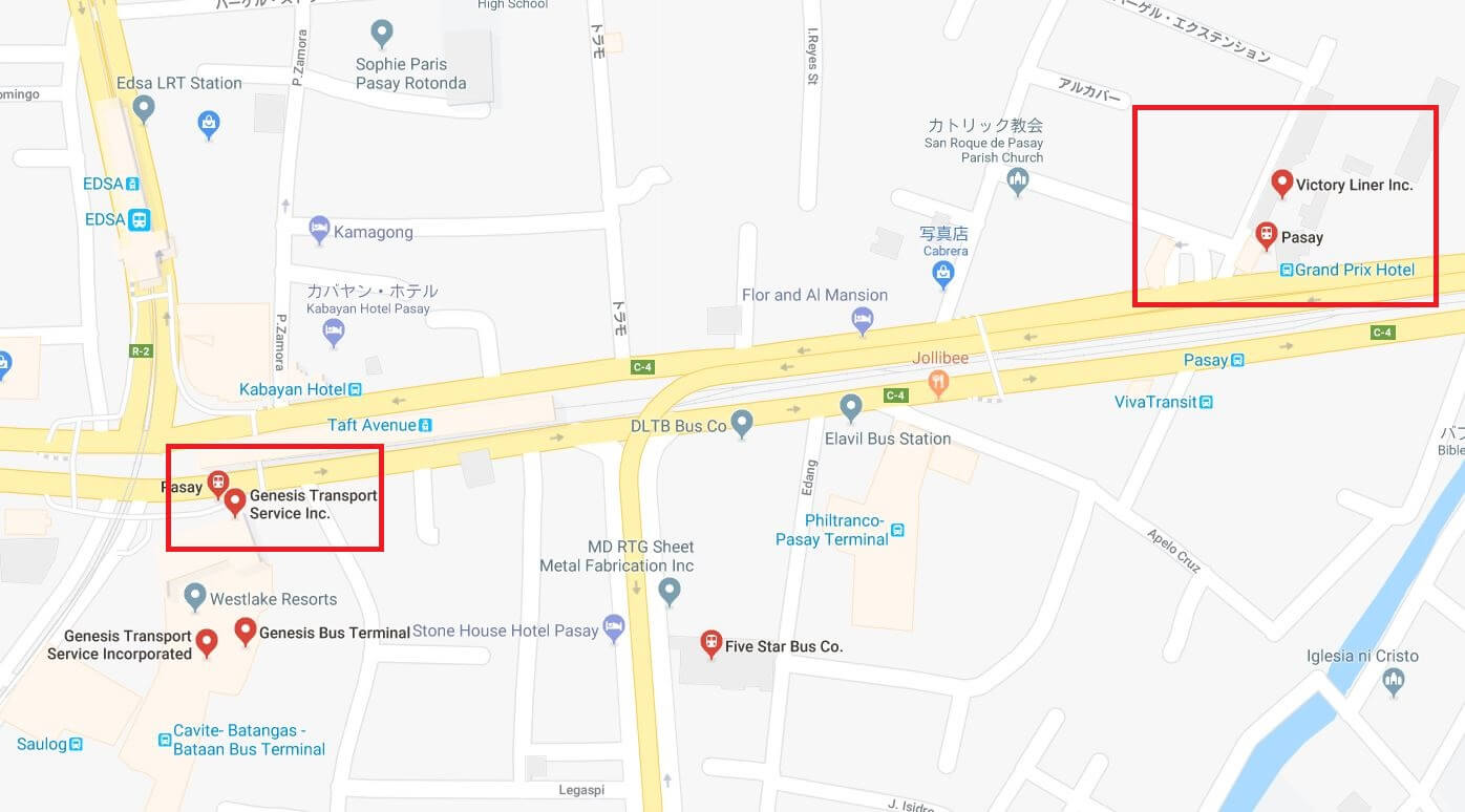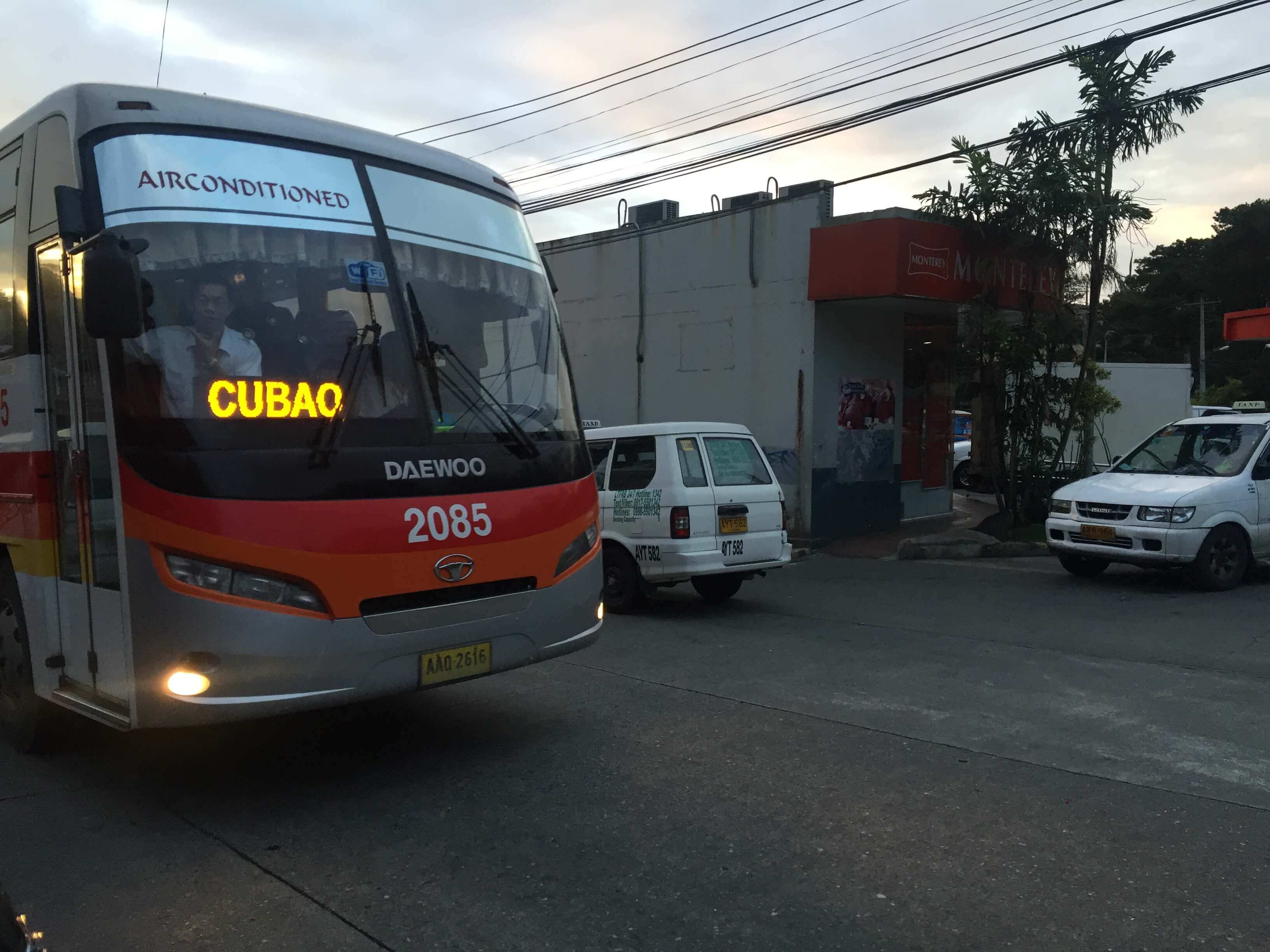 バスターミナルからバスに乗る必要があります。空港から近いエリアはパサイバスターミナルです。ジェネシス(JOYバス)、ビクトリーライナーなどバスターミナルが密集したエリアになります。他にもケソンシティーのクバオにも同様にターミナルが集まっています。各ターミナルそれぞれ運行スケジュールが異なります。